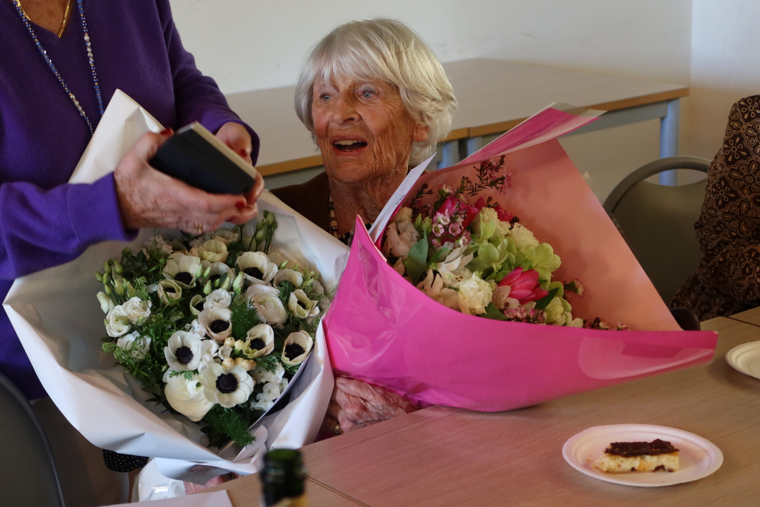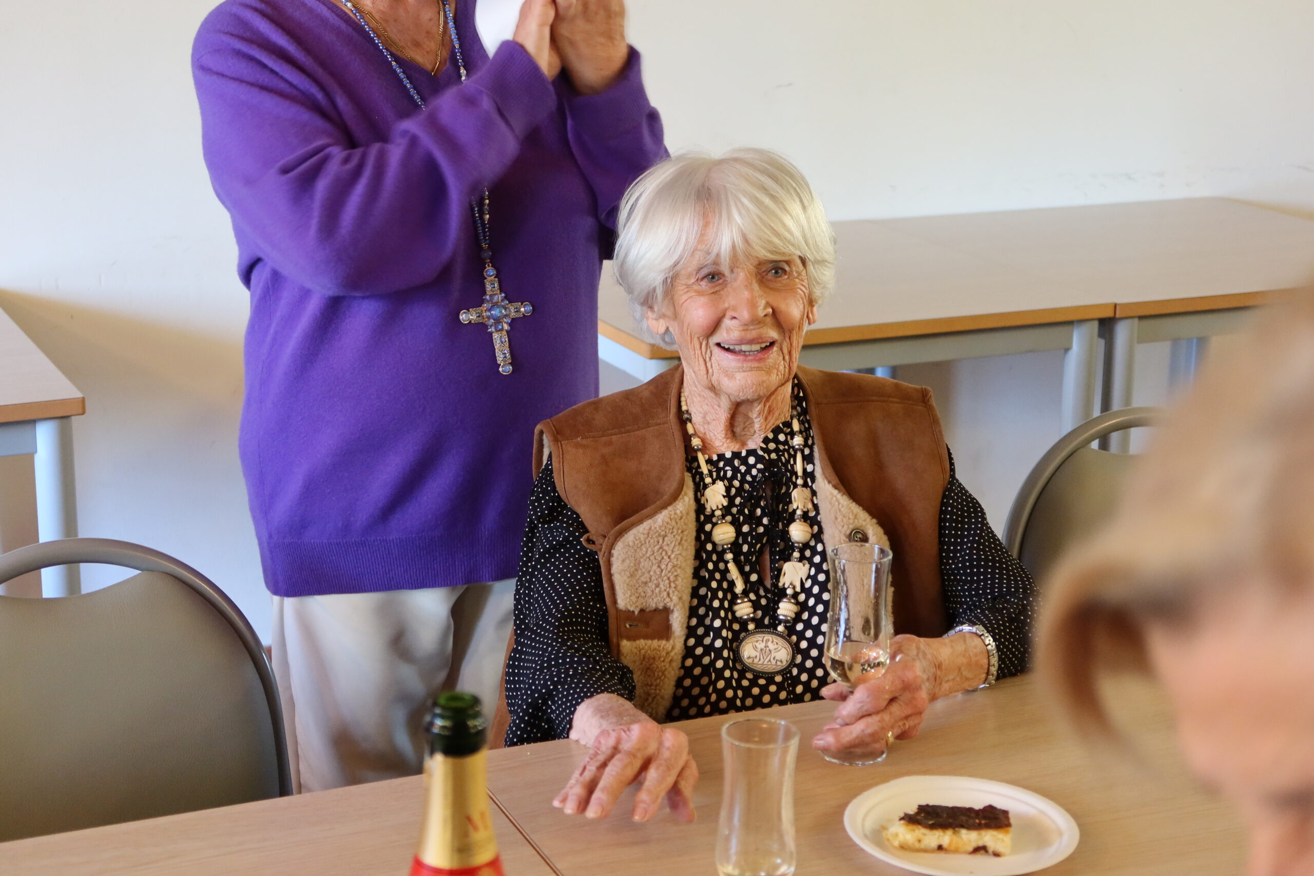Un beau moment de convivialité à la Maison des Aînés, entourée de sa famille et de ses proches.