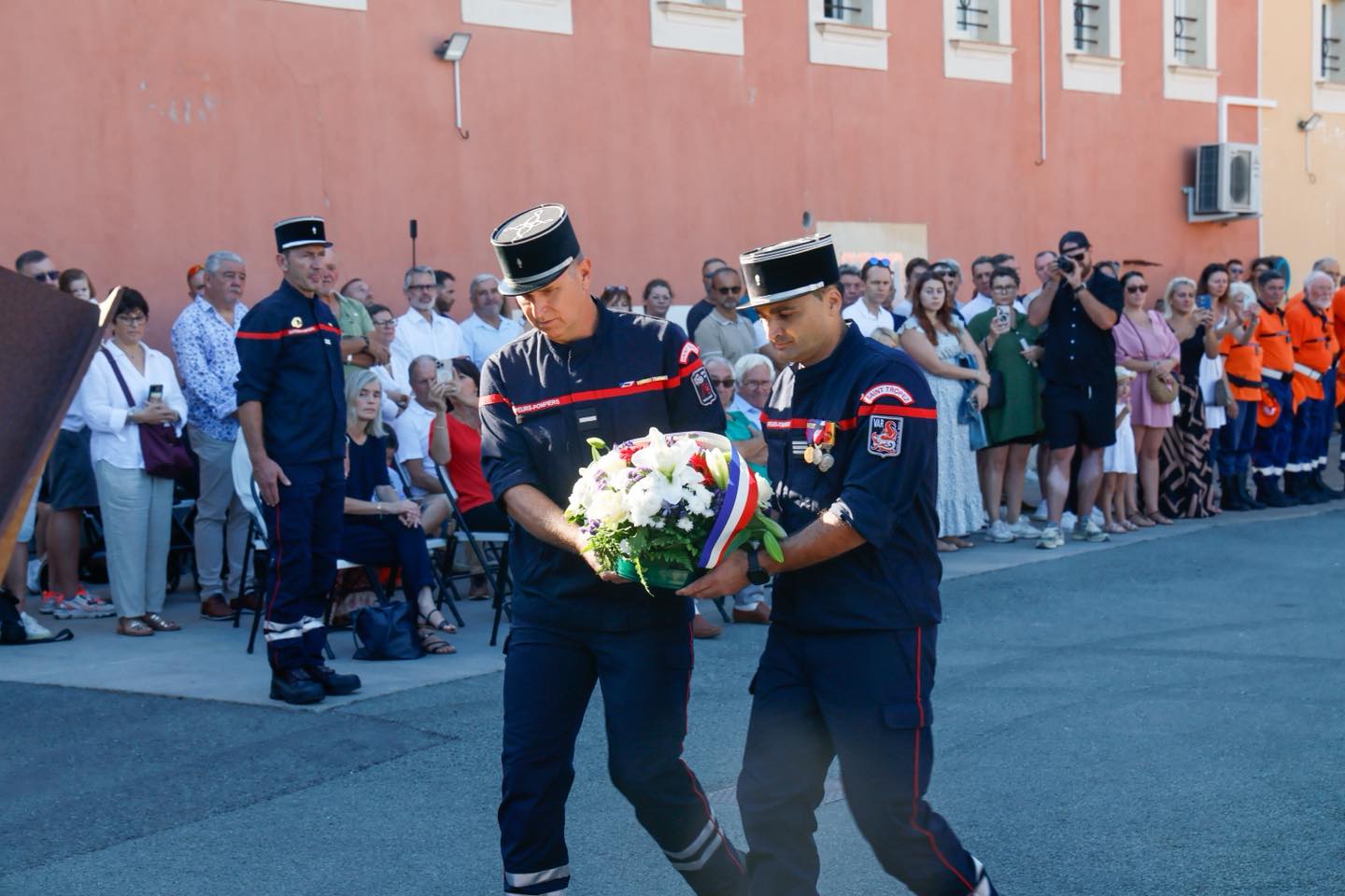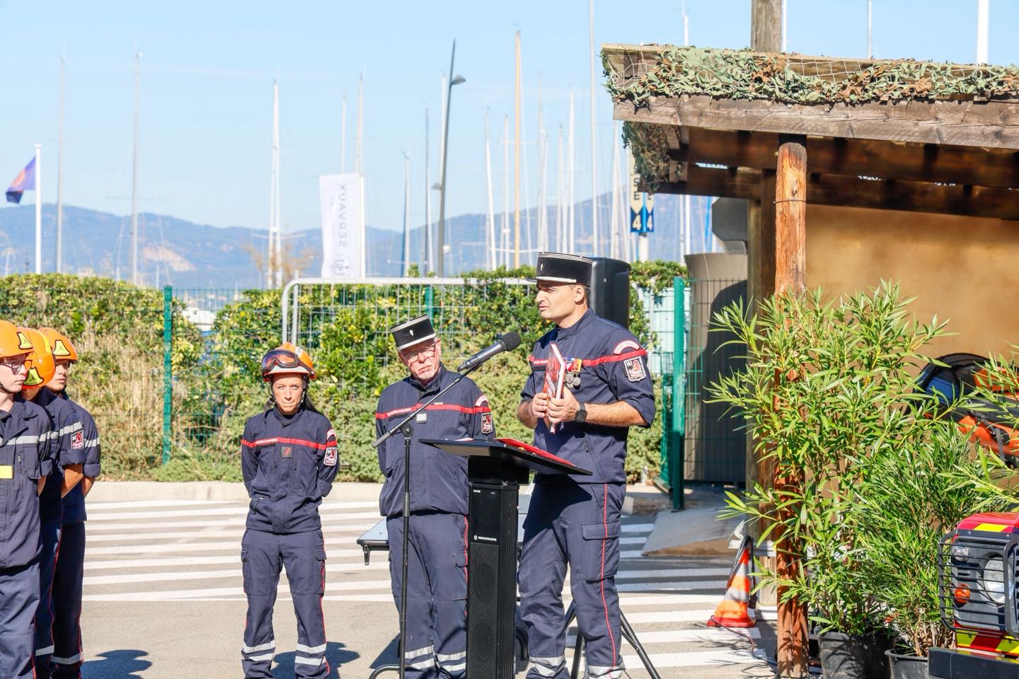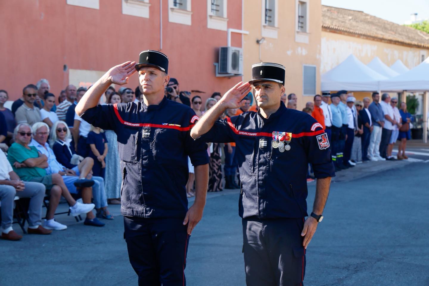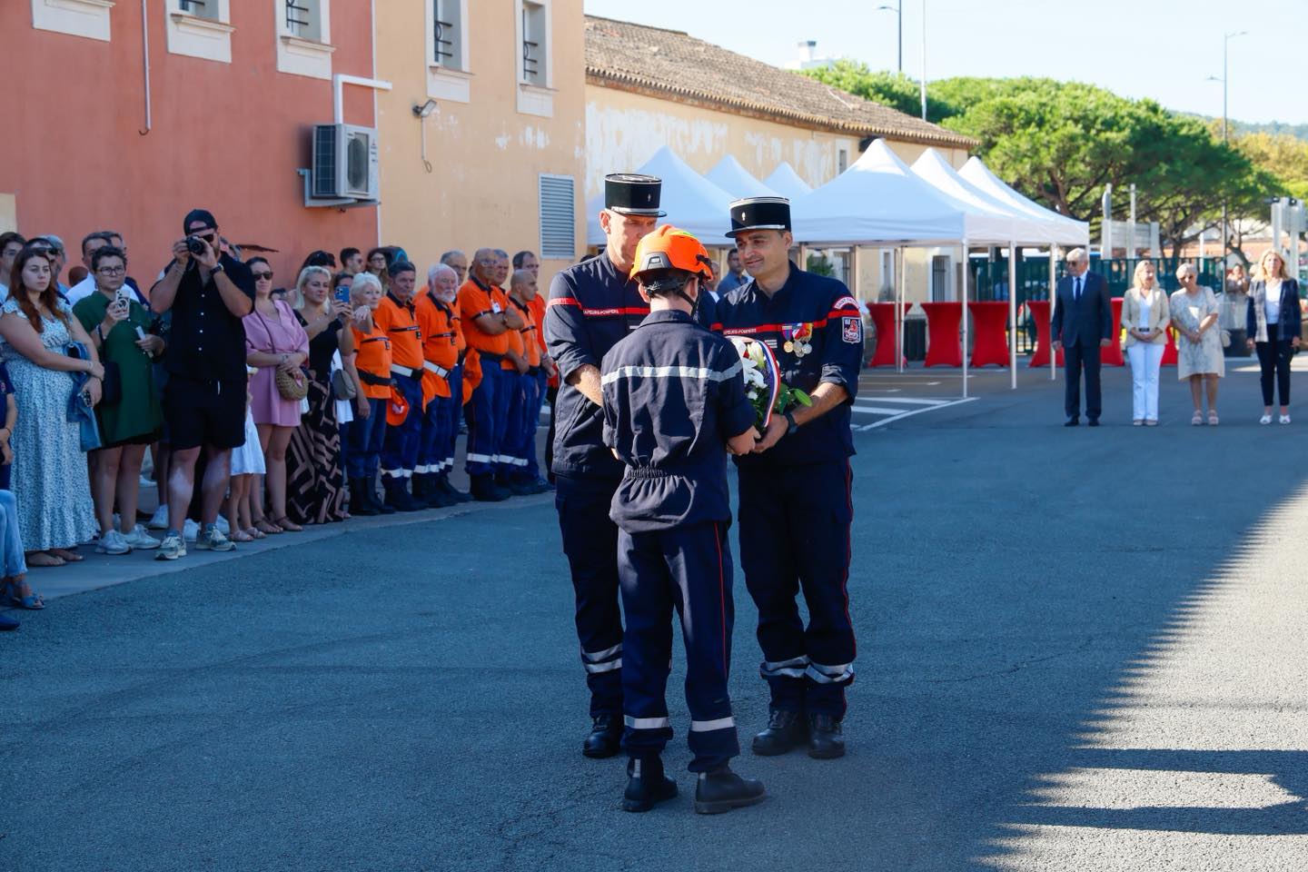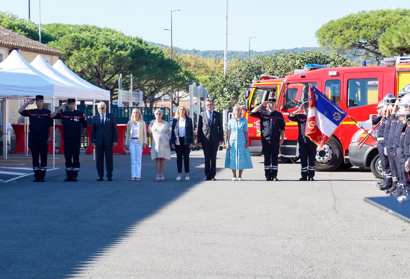 La matinée a été marquée par une cérémonie officielle réunissant les pompiers de la caserne, leur capitaine Mario Aulino, ainsi que de nombreuses personnalités venues rendre hommage à leur engagement, notamment Philippe Lottiaux, député de la 4e circonscription du Var, Françoise Dumont, sénatrice du Var, Véronique Lenoir, Vice-présidente du Département du Var et les 3 maires de la Presqu’île.
