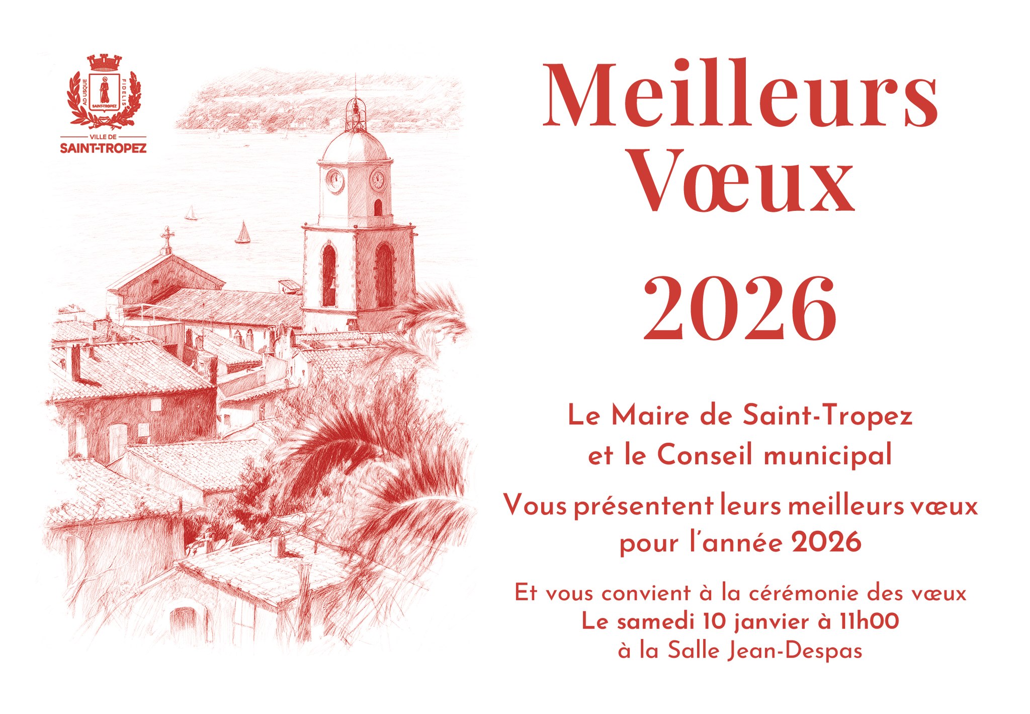 Cérémonie des voeux 8 Jan 2026 La Ville de Saint-Tropez vous informe que la cérémonie des vœux aura lieu le samedi 10 janvier à 11h à la salle Jean-Despas.