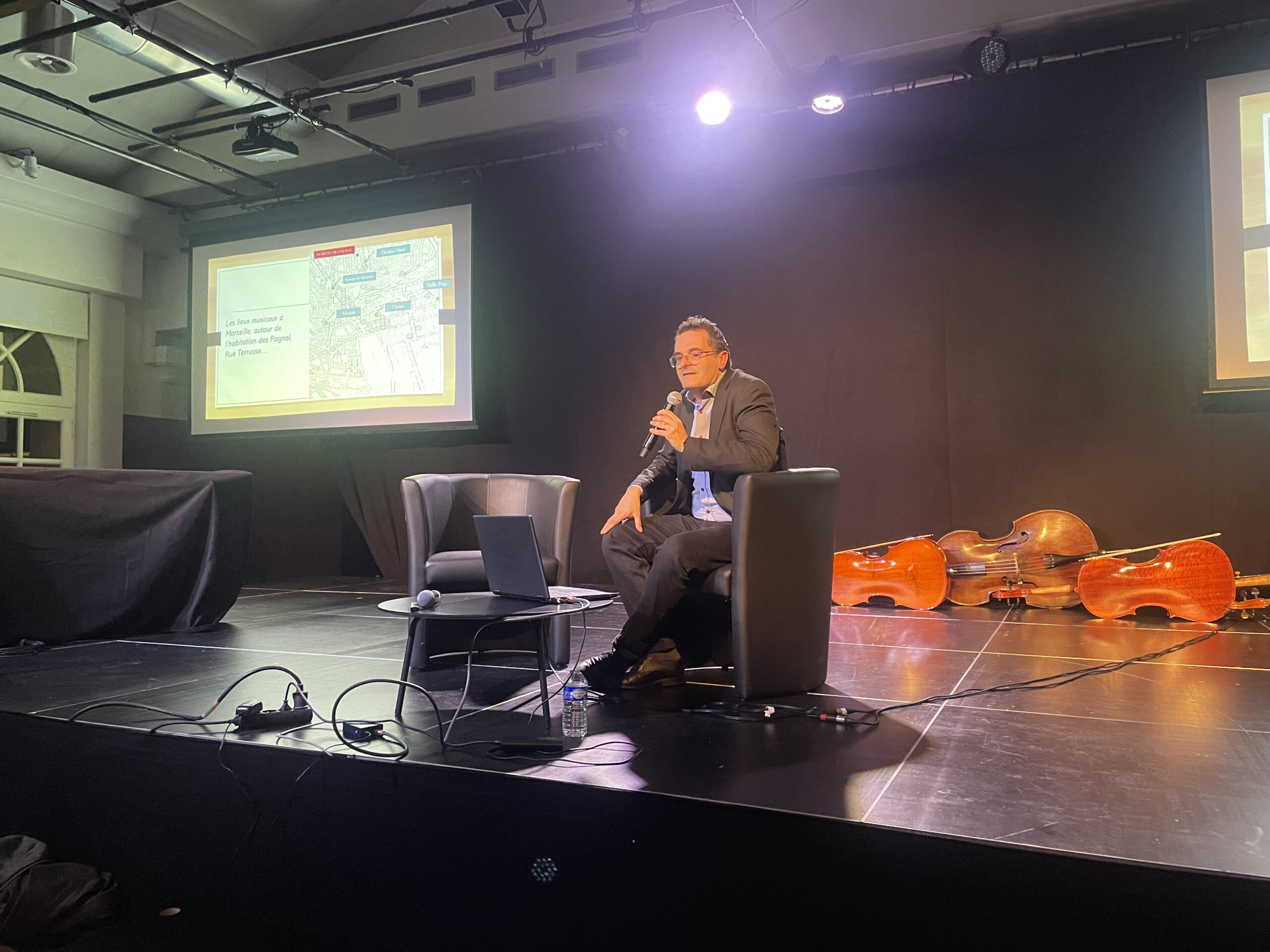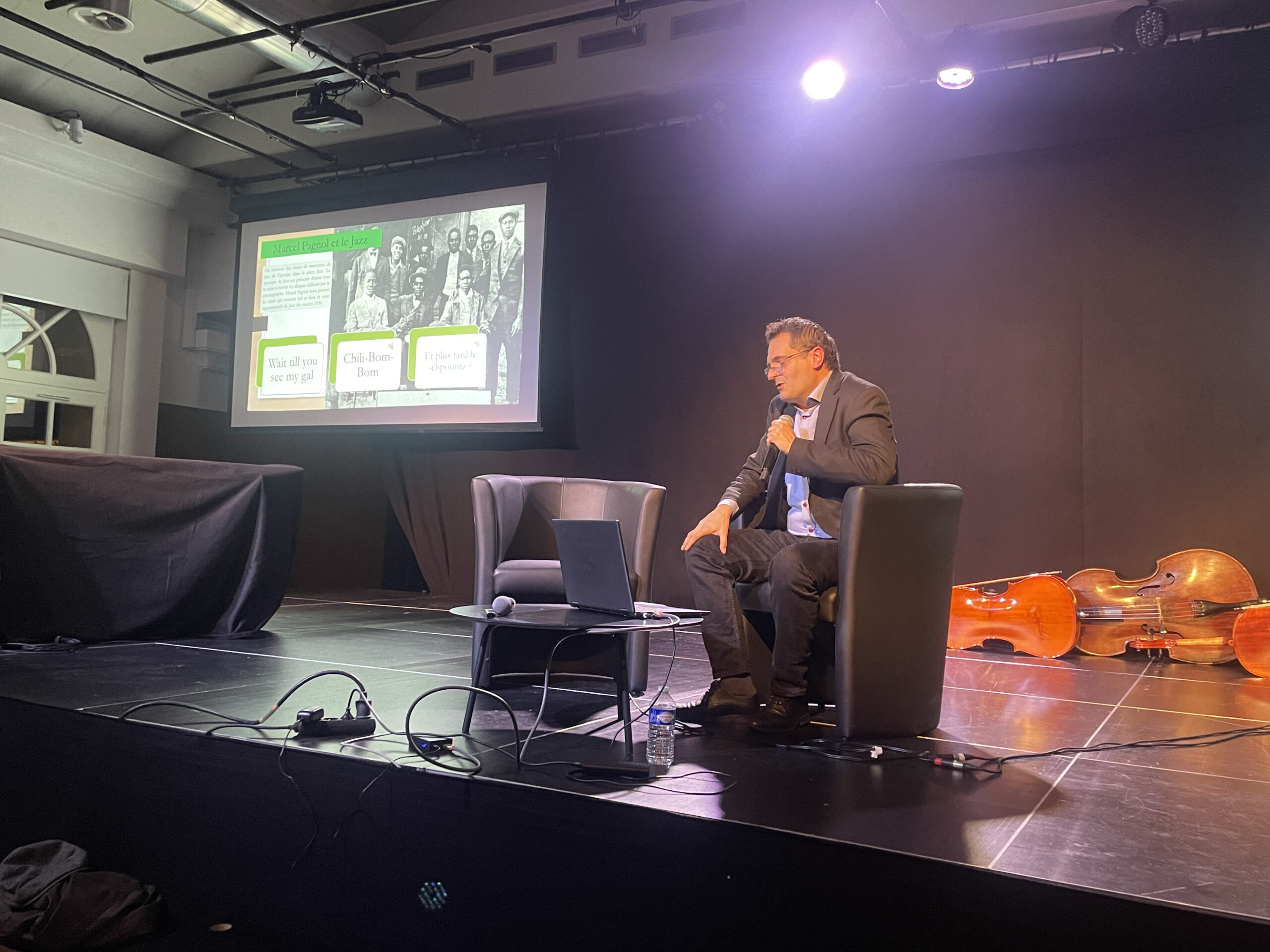 La conférence, animée par Julien Ferrando, Directeur artistique de l’ensemble Em’AMU (Université Aix-Marseille) et enseignant-chercheur en musiques patrimoniales, nouvelles technologies et musique de cinéma, a permis d’explorer la place essentielle du son dans l’œuvre de Marcel Pagnol.